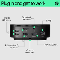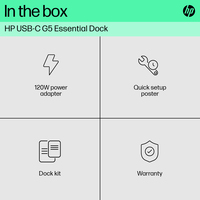 Have everything you need to get the job done with this compact dock that keeps your desk clean. With a single USB-C® cable[1], open your ports to all your accessories, connect up to three high-res displays[2], stable Ethernet connection, and so much more…all while charging your laptop[1]. Clear your desk and clear your mind with this HP USB-C G5 Essential Dock.
