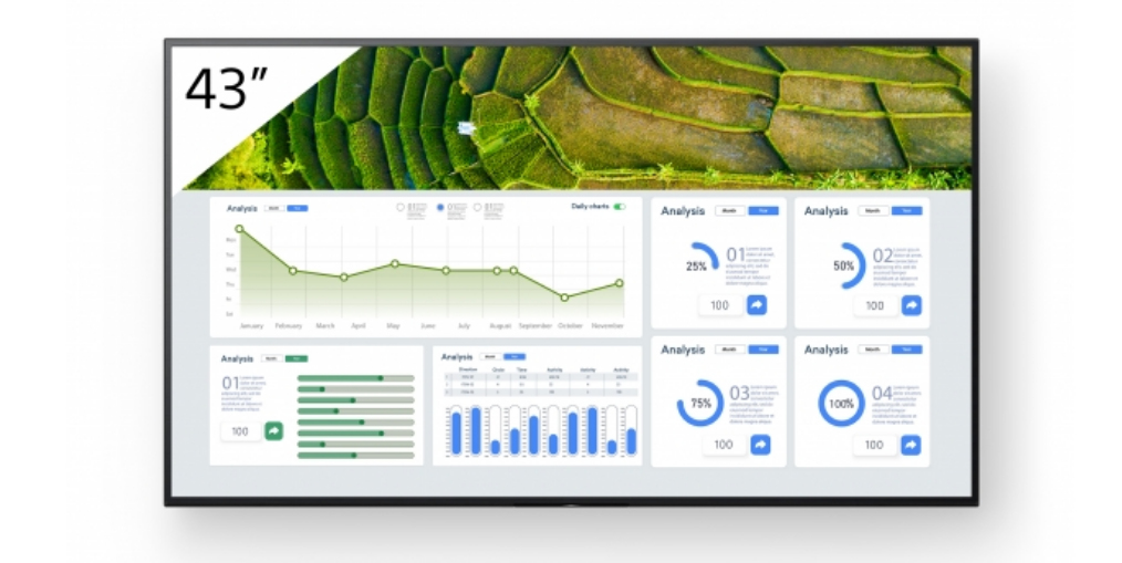 The sleek, minimal design of the FW-43BZ30L brings impeccable style to any business environment. The display’s elegant lines are further enhanced by practical touches for seamless integration in retail stores, colleges and corporate workspaces.
